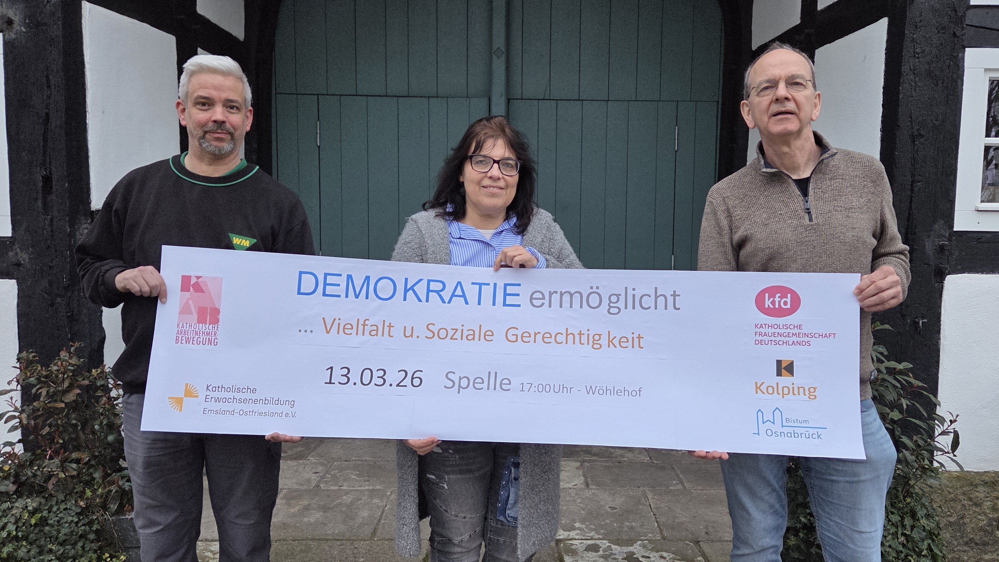 Das Diskussions- und Themengespräch mit der Bundestagsabgeordneten Anja Troff-Schaffarzyk und dem Direktor des Forschungsinstituts für Philosophie, Prof. Dr. Jürgen Manemann unter der Moderation von Rene Kollai in der Reihe ‚Demokratie ermöglicht…‘ von KEB, KAB, KFD und Kolping im Bistum Osnabrück lädt zur Antwortsuche und Diskussion am