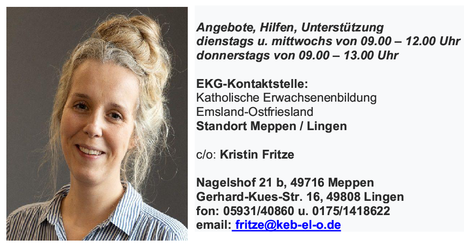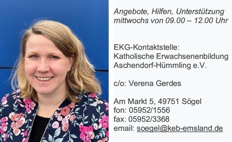 Kontakt: tel. 05952 1556 oder e-mail soegel@keb-emsland.de.