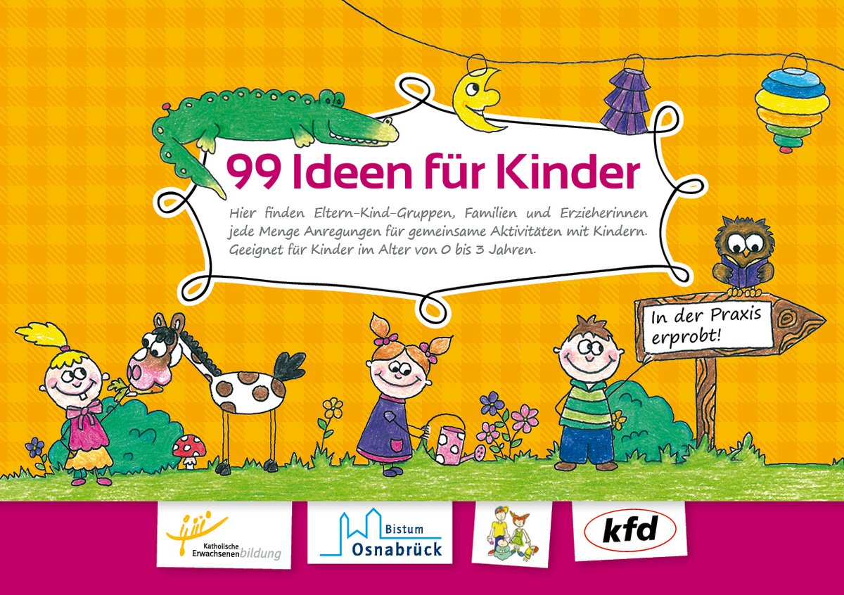 Das Spiele- und Kreativbuch „99 Ideen für Kinder“ bietet Anregungen für gemeinsame Aktivitäten in den Eltern-Kind-Gruppen. Hiermit sollen die Entwicklung der Kinder gefördert und Werte vermittelt werden. Es helfen neuere Spielideen oder „alte Schätze“ aus der eigenen Kindheit, die fast vergessen wurden.